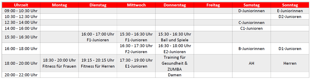 Trainingszeiten Sportplätze (März-November)