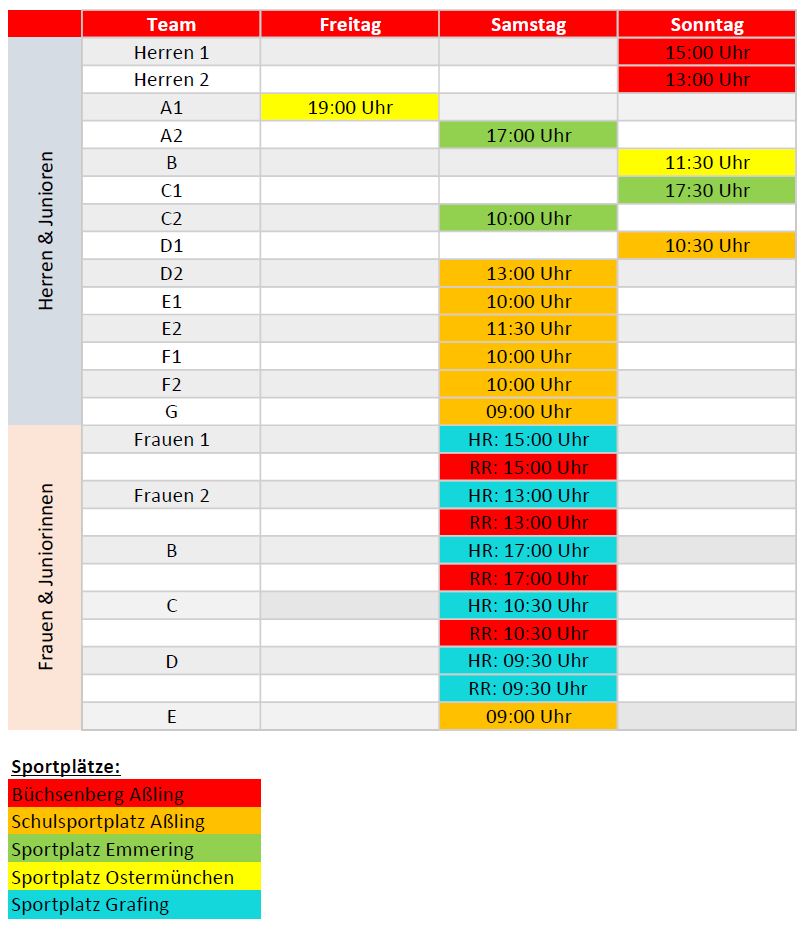 Heimspielzeiten Sportplätze (März-November)